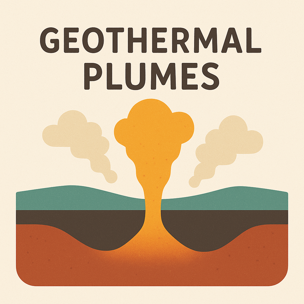그 중에서도 **지열 플룸(Geothermal Plumes)**은 지구 맨틀 깊은 곳에서 솟아올라 지표로 마그마를 공급하는 뜨거운 기둥 구조입니다.